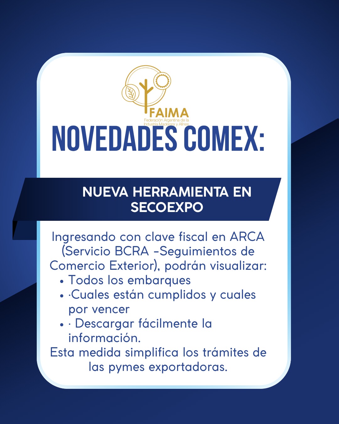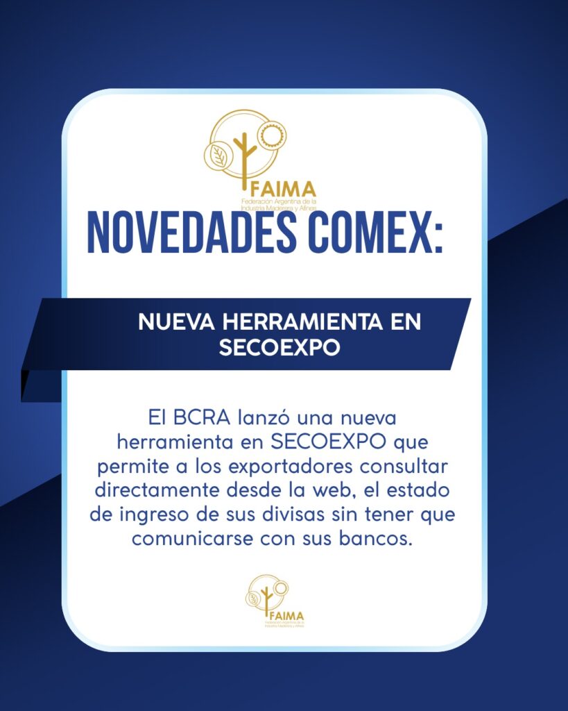 En el día de ayer, el BCRA lanzó una nueva herramienta en SECOEXPO que permite a los exportadores consultar directamente desde la web, el estado de ingreso de sus divisas sin tener que comunicarse con sus bancos.Ingresando con clave fiscal en ARCA (Servicio BCRA -Seguimientos de Comercio Exterior), podrán visualizar: